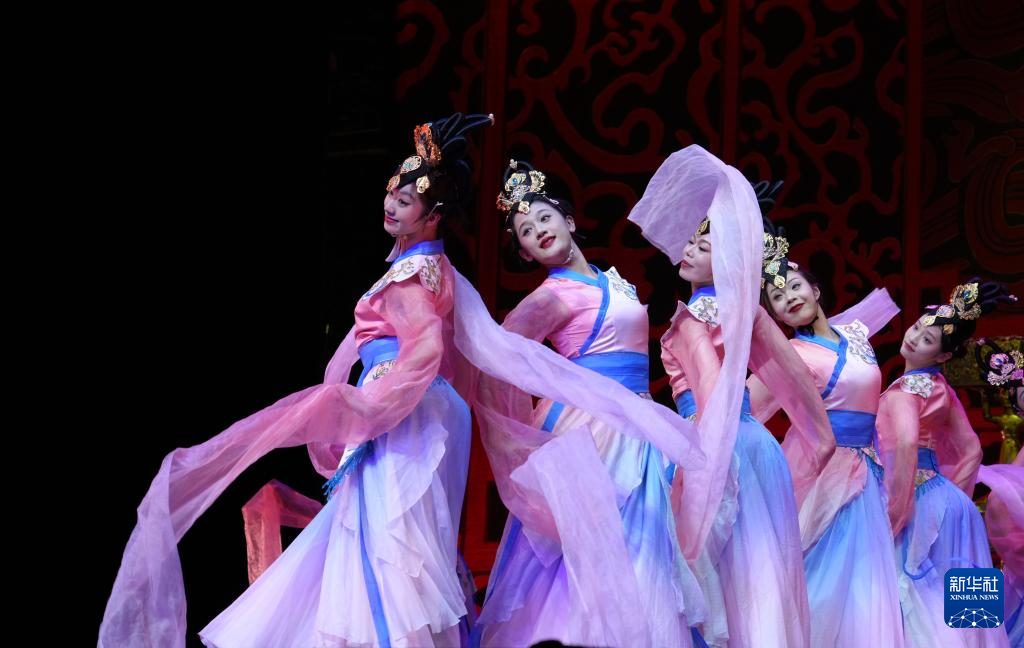 5月20日,演员在法国巴黎莫加多剧院里向观众呈现大型音乐舞蹈史诗《编钟乐舞》。新华社记者 唐霁 摄