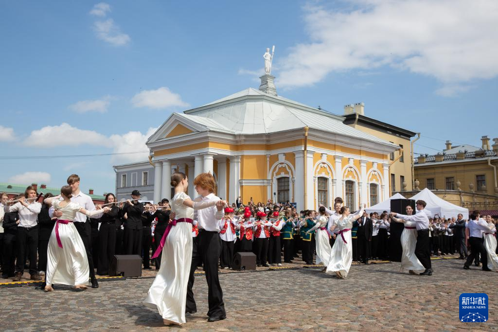 5月27日,儿童和青少年乐手等参加在俄罗斯圣彼得堡彼得保罗要塞举行的管乐队演出。
