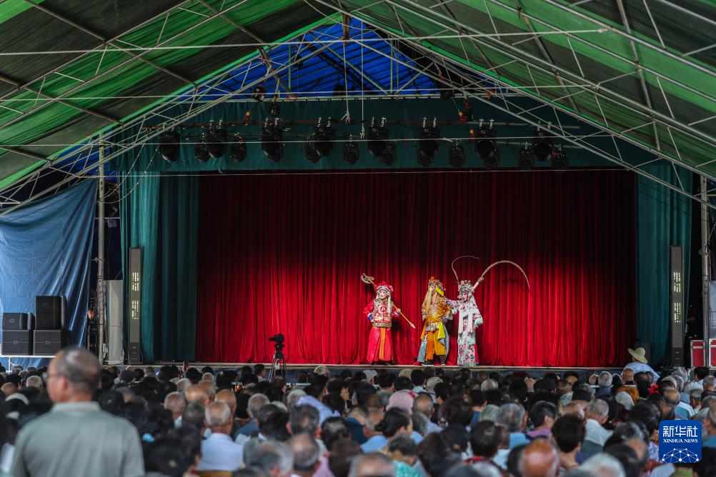 6月17日,浙江武义后陈村的百姓在观看送戏下乡演出。