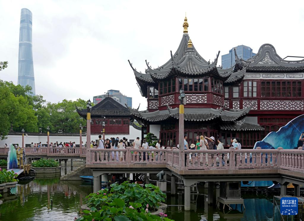 7月10日在豫园九曲桥边拍摄的重新开放的湖心亭。