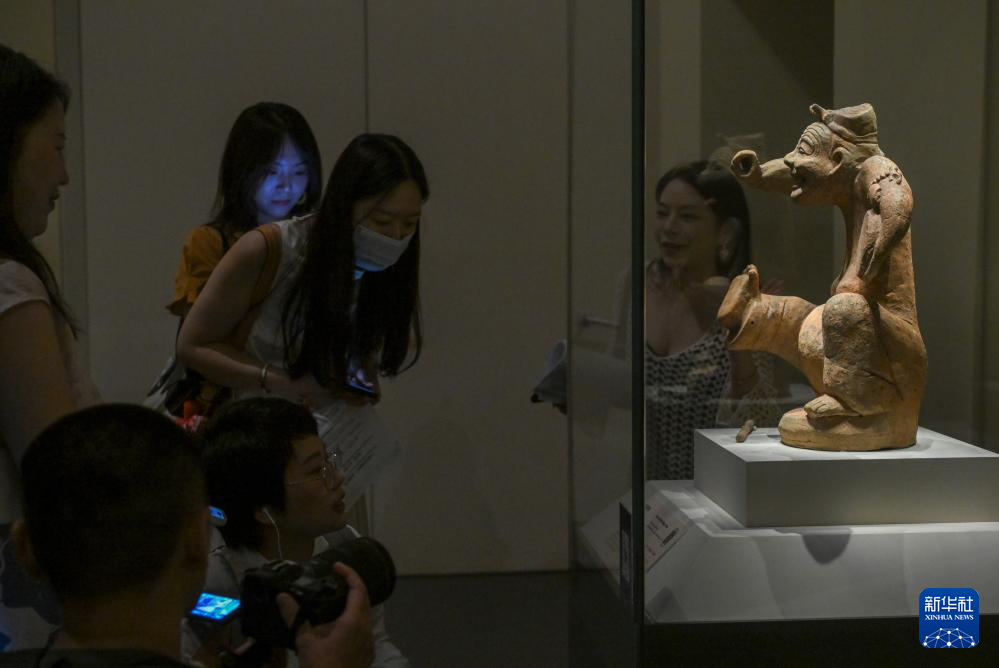 7月21日,人们在国博参观仰韶文化鹰形陶鼎。
