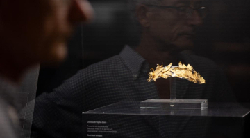 7月30日,游客在内蒙古呼和浩特市内蒙古博物院新馆拍摄展品。