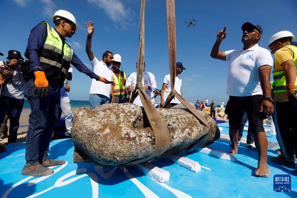 当日,埃及旅游和文物部在亚历山大附近的阿布基尔湾地中海水域打捞出三件大型石刻雕像,包括一尊残缺的狮身人面像、一尊断颈断膝的托勒密时代晚期人物雕像,以及一尊白色的罗马贵族大理石雕像。