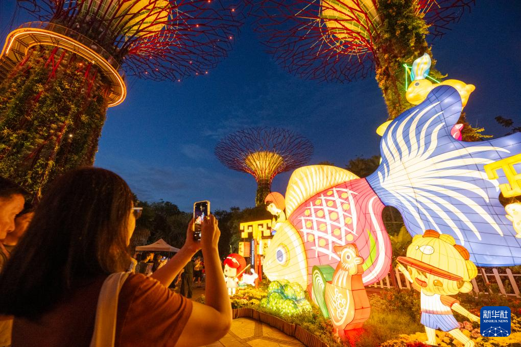 新加坡滨海湾花园中秋节灯饰亮起-新华网