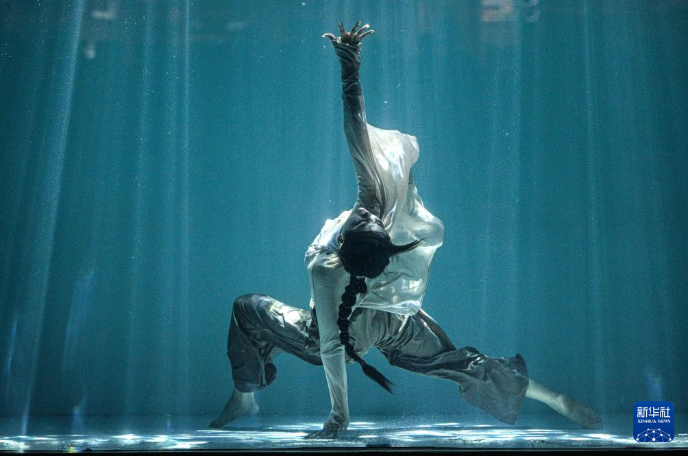 1月14日,舞者在2026中国极限舞蹈表演赛期间进行水下舞蹈表演。