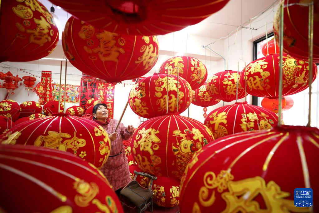 春节临近,大红灯笼迎来产销旺季,工人们忙着赶制各式灯笼,供应各地节日市场。