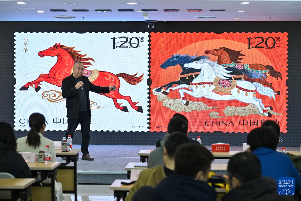 1月29日,《丙午年》生肖邮票设计师赵恩重介绍《丙午年》生肖邮票设计理念和传统生肖文化的多元化表现形式。