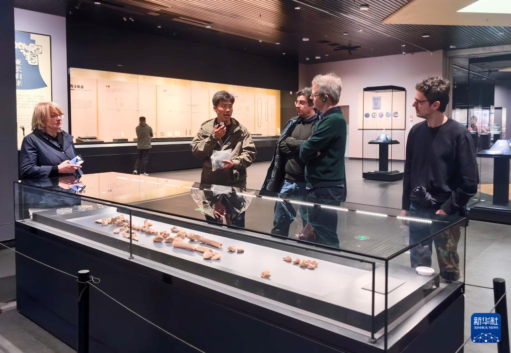 3月31日,参加中意文化遗产保护修复国际圆桌会议的意方专家在河南安阳殷墟博物馆参观。