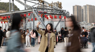 4月9日,观众在湖南省博物馆参观“我的吐鲁番”摄影展时拍照。