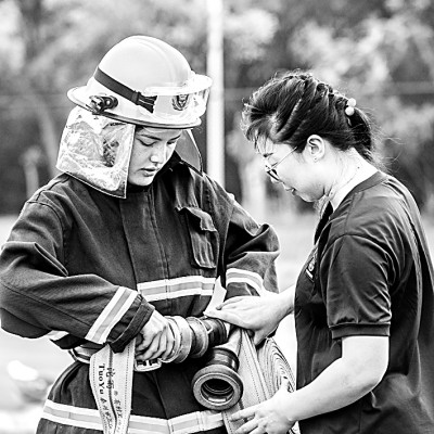 重庆电讯职业学院建筑消防专业(三年制)大二学生在辅导员指导下进行训练。新华社发