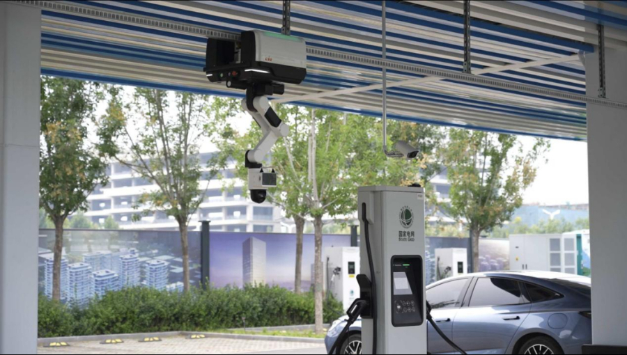 廊坊人工智能绿电超级充电站内的智能吊舱机器人
