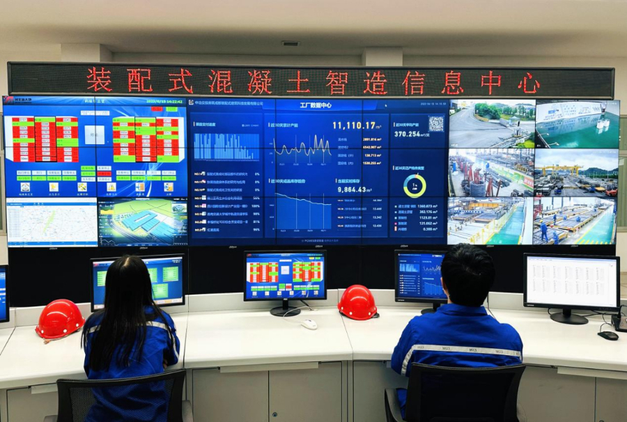 ——精益生产,效率提升。中国二十二冶围绕新型建筑工业化生产制造,组建中冶绿建装配式PC数字化智慧工厂智能管理系统,实现预制构件生产的可视化、数据化、流程化、规范化、协同化。全面推广构件三维软件BIM设计,实现从设计端到生产端的数据直送,依据构件安装进度和生产任务需求,结合工厂产能和生产节拍,科学制定排产计划,大幅提升生产线效率,模台利用率提升30%,平均每个项目可节约工期5至7天。中国三冶建设的自动化PC构件生产线,实现钢筋加工、混凝土布料等关键工序的无人值守智能化操控,产能与精度同步跃升,达成毫米级控制与标准化品质。深度融合BIM技术与物联网系统,构建从设计信息到生产执行、物料追踪的全流程数字化管控体系,推动制造模式向智能化、柔性化深度转型。