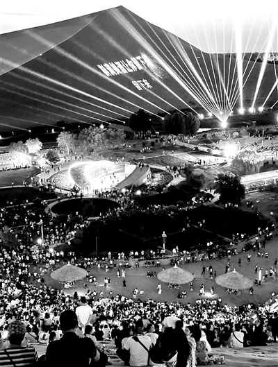 在鸣沙山席地而坐,附近就是月牙泉景区的一泓碧水,头顶是点点星光,耳畔是响彻云霄的万人大合唱,而歌词甚至就打在对面的沙丘上……6月到10月,去敦煌莫高窟旅游的游客,都有机会免费参加鸣沙山月牙泉景区的万人星空演唱会。