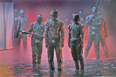 而让“锅圈”变得意味深长的,是瓦格纳丰富壮丽的音乐。同样,赋予波达执导的国家大剧院版《莱茵的黄金》以深邃意蕴和光彩的,是吕嘉指挥下的国家大剧院管弦乐团,以及沃坦的扮演者埃吉尔·西林斯、多纳的扮演者罗伯特·博克,以及扮演弗洛的中国旅欧男高音歌唱家王川的精彩表现。扮演弗里卡和弗莱娅的两位德国歌唱家——女中音贝蒂娜·兰奇和女高音塔尼娅·库恩,不仅有着出色的嗓音和声乐造诣,而且舞台形象富有魅力,丝毫不会让人想到萧伯纳以其“毒舌”措辞对当年拜罗伊特舞台上女主角的著名比喻——会移动的啤酒桶。