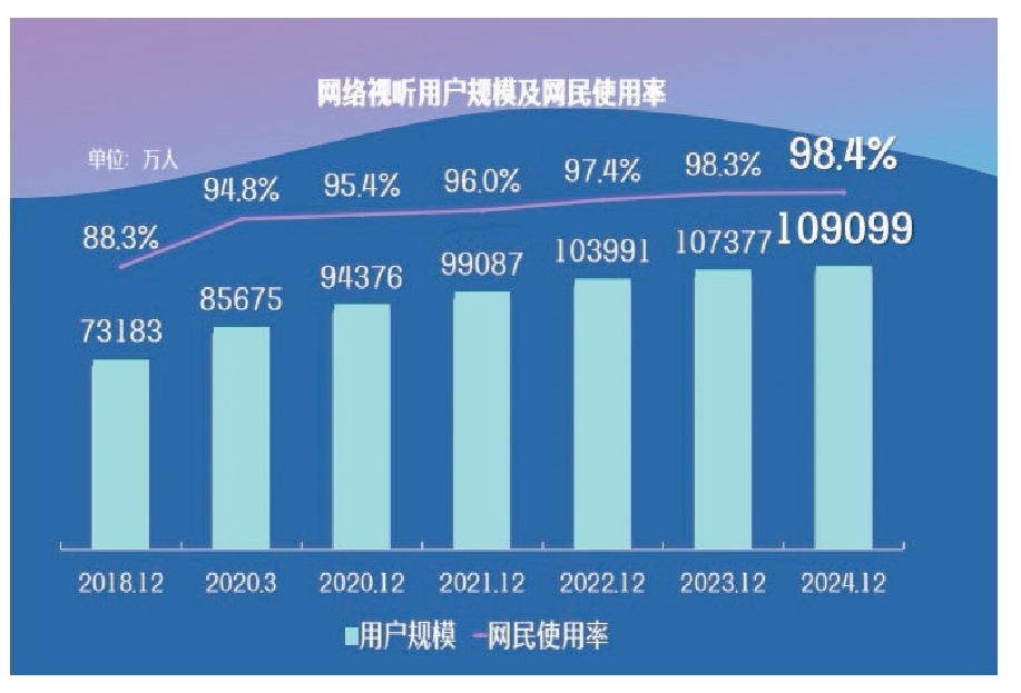 近日,在第十二届中国网络视听大会上发布的《中国网络视听发展研究报告(2025)》(以下简称《报告》)显示,我国网络视听用户规模已达10.91亿,微短剧的用户规模达6.62亿人,网络视听市场总规模达1.22万亿元。网络视听第一大互联网应用地位凸显,被网民们形容为“数字空气”。