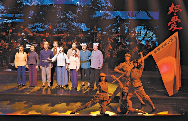 《炽·爱》刘炽作品音乐会的设计并不复杂,直白地呈现了经典旋律的力量。序幕时,手风琴拉响了“一条大河”的旋律,音色极具诉说感,仿佛将要开启一场时空的对话;“为什么战旗美如画”的呐喊声中,每一个音符都在嘶吼;“让我们荡起双桨”则十分悠扬,舞台背后的屏幕上白塔伫立,观众仿佛已感觉到“迎面吹来了凉爽的风”;最震撼的当数尾声曲目《我的祖国》,宏大的乐团奏响这首经典歌曲,现场观众早已按捺不住,一齐跟着演员们合唱,唱到“这是美丽的祖国,是我生长的地方”,很多人眼中已有泪光。