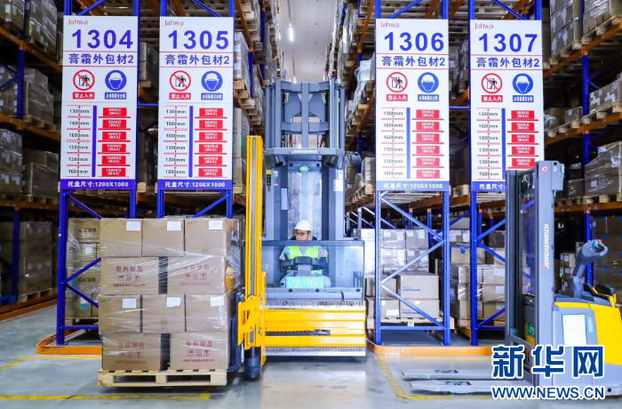 2023年2月15日,上海家化仓库人员在进行库位管理。新华网发