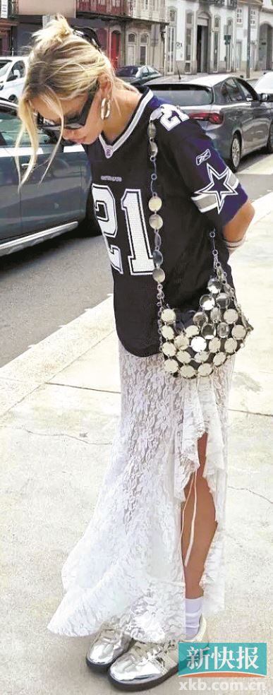 欧洲杯引发的一件球衣时尚风还在继续升级,与前年世界杯期间流行的复古足球风有所不同,今年欧洲杯期间流行的是在以球衣为整体穿搭“定调”的基础上加入浪漫、柔媚、甜美元素,创造出独特有趣又充满矛盾感的时尚态度。
