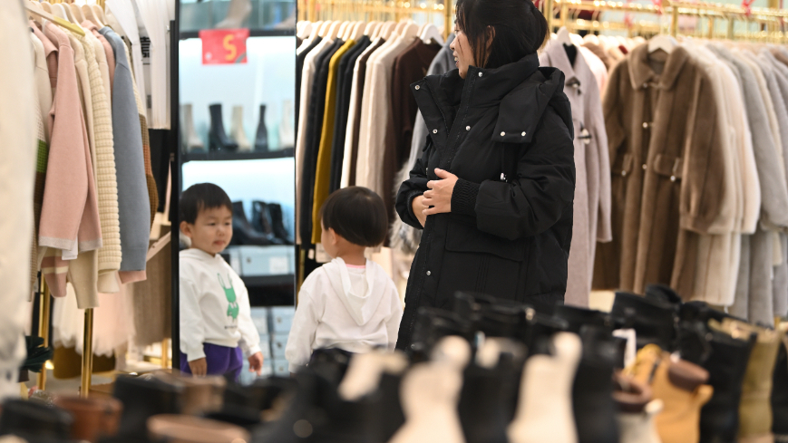 消费者正在选购羽绒服。(图片由CNSPHOTO提供)
