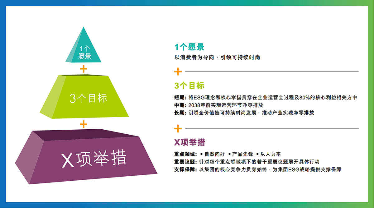 今年以来,波司登发布“1+3+X”ESG 战略框架及管治架构,沿着企业价值链统筹 ESG工作,将 ESG 理念全面融入企业战略与发展实践。并且确立了“以消费者为导向,引领可持续时尚”的 ESG 战略愿景,设定了“2038年前实现运营环节净零排放”的碳目标,为企业的可持续发展规划了明确的减碳路径。波司登把联合国可持续发展目标(SDGs)融入ESG管理实践,在产品先锋、自然向好、以人为本等重点领域推动企业管治和践诺行动行稳致远,并逐步把可持续发展理念融入企业经营全过程和更多的利益相关方,构筑品牌可持续时尚能力和开放创新生态。