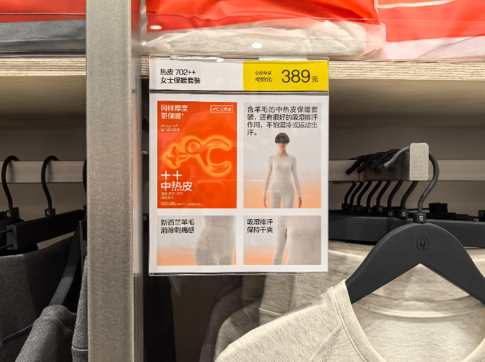 门店内一款蕉内“热皮702++”保暖内衣的产品介绍。