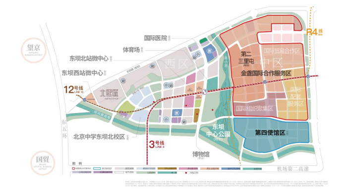 交通方面,东坝的价值释放与地铁3号线一期和12号线的开通密切相关。地铁3号线连接三里屯、工体等核心商务区,而12号线则贯穿四个核心城区,未来,R4快线的建设将进一步强化东坝与首都机场及城市核心区的连接。