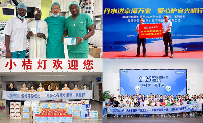 在践行企业社会责任的道路上,爱博医疗积极响应“健康中国2030”号召,从国际援助、医疗捐赠、公益慈善与科学普及四个维度着手,构建协同并进的行动体系,系统推进各项公益实践。