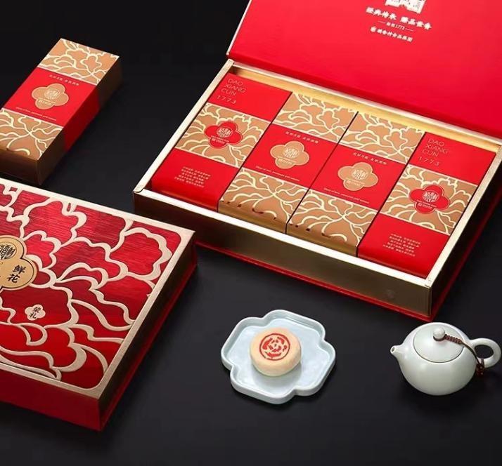 以稻香村牡丹鲜花·荣礼月饼礼盒为例,礼盒包装以寓意富贵吉祥的国花牡丹为设计灵感,尽显国潮美学的魅力。礼盒内含牡丹鲜花月饼、蛋酥牡丹月饼、玫瑰鲜花月饼、糖醇豆沙月饼四种口味。其中,稻香村依托先进的食品科技配比,让牡丹鲜花月饼在保持柔软口感的同时降低了卡路里的摄取量,让人们在体验美食的同时不必为摄入过多热量担忧,符合现下健康的饮食理念,产品上市后不仅备受消费者好评与青睐,还获得了官方认可,入选《中国特色风味食品标志性产品名录》。