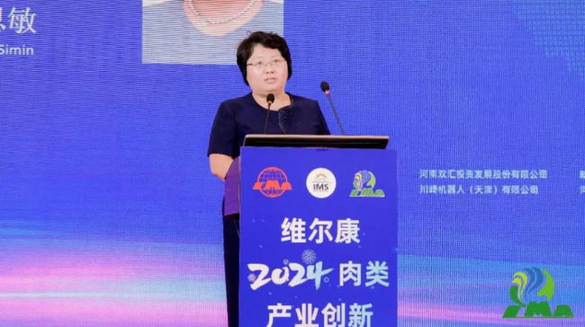 中国肉类协会猪业分会会长、山东得利斯食品股份有限公司董事长郑思敏分析了我国猪业发展现状与趋势,她认为猪肉产业将继续依托科技创新与市场需求,从而推动行业高质量发展,得利斯愿与行业同仁携手提升中国肉类产业的国际竞争力。