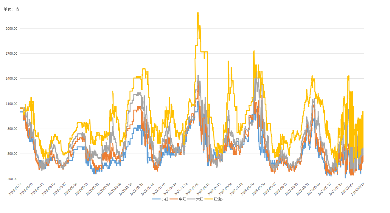 图3 不同规格红虾价格走势(单位:点)
