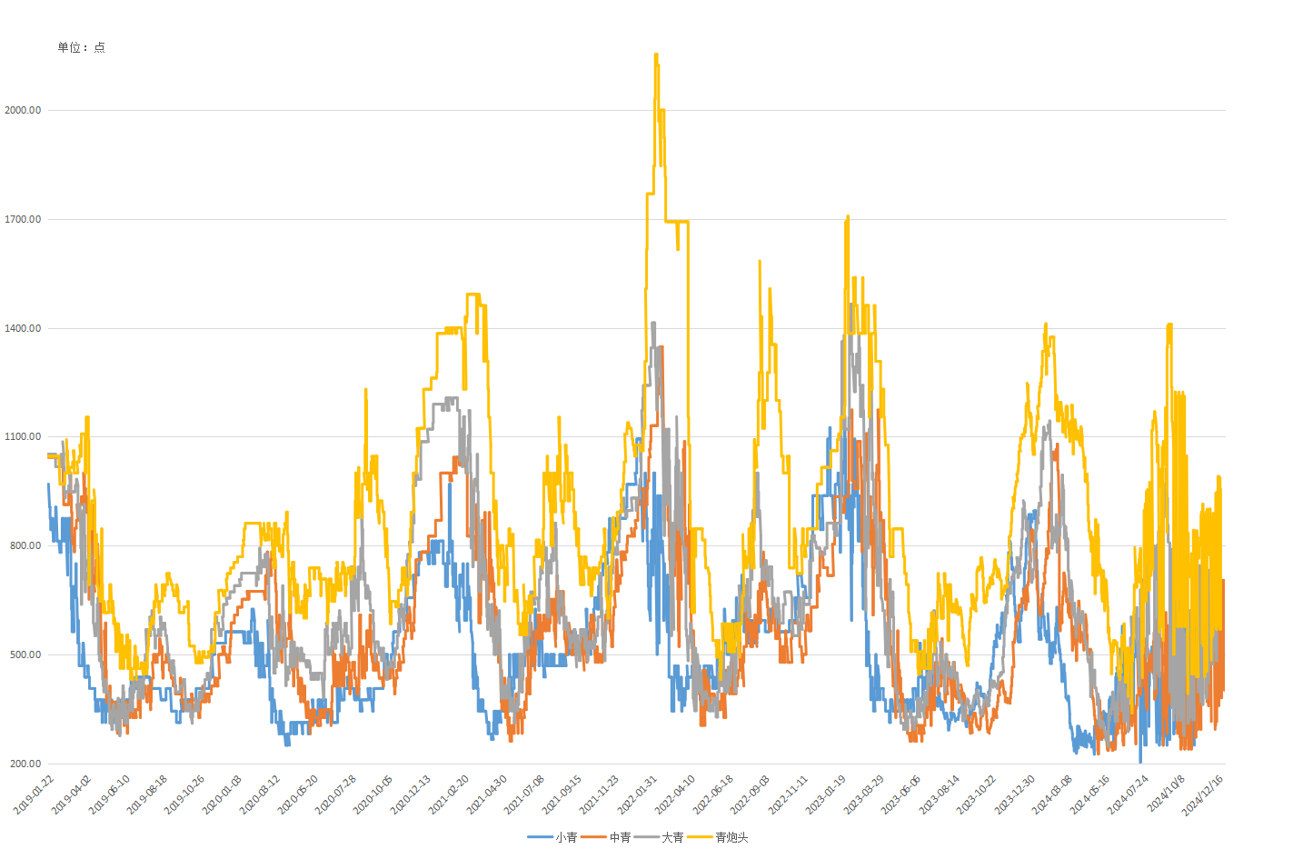 图4不同规格青虾价格走势(单位:点)