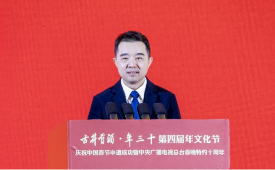 佘贤君在致辞中表示,在与古井贡酒的多年的合作中,我们看到了古井贡酒忠实传承中国年文化的坚定步伐、积极传播中国酒文化的有力实践,古井贡酒也在这个过程中焕发出新的生机与活力。“过大年、喝古井、看春晚”深入人心,古井贡酒·年三十第四届年文化节的举办,是对年文化的一次深情致敬。