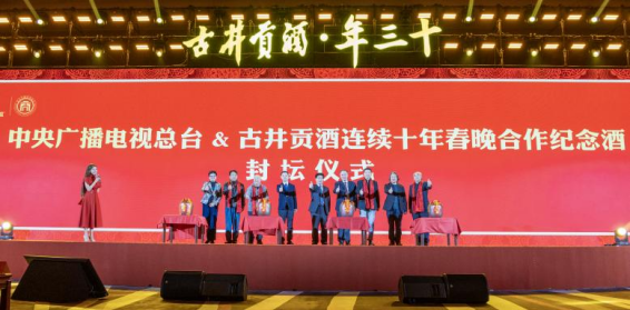 活动现场,与会嘉宾共同为央视总台&古井贡酒连续十年春晚合作纪念酒封坛。