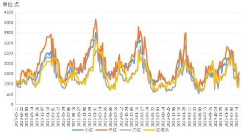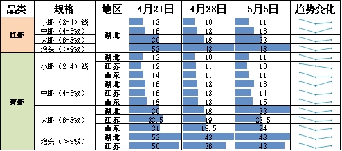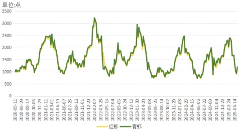节假日因素影响下,红虾和青虾市场价格上涨。截至5月5日,红虾价格指数报1152.28点,环比上涨27.01%;青虾价格指数报1197.92点,环比上涨27.96%。