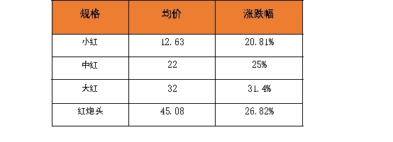 分规格来看,本期小龙虾各规格品价格上行。具体而言,截至5月5日,红虾均价报27.94元/斤,环比上涨27.01%。其中小红均价报12.63元/斤,环比上涨20.81%;中红均价报22元/斤,环比上涨25%;大红均价报32元/斤,环比上涨31.4%;红炮头均价报45.08元/斤,环比上涨26.82%。