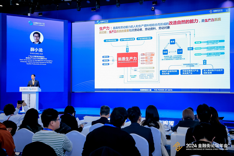 图为广州大学管理学院院长、新质生产力50人论坛副秘书长薛小龙介绍《报告》。