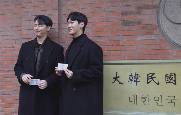 2025年1月,韩国游客在位于上海马当路的大韩民国临时政府旧址门口拍照打卡。新华社记者张梦洁 摄