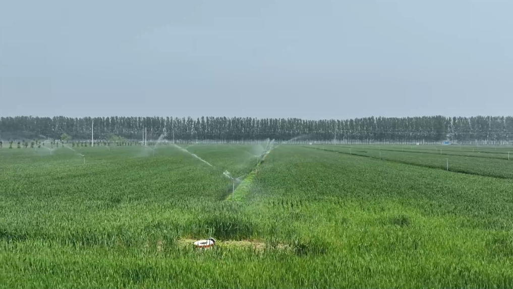 在河南省开封市尉氏县张市镇万亩高标准农田示范区,固定式喷灌、伸缩式喷灌、半固定式喷灌、滴灌、微喷灌和绞盘机喷灌等多种先进灌溉技术已投入使用,农户通过手机即可实现千亩农田在“指尖管理”。
