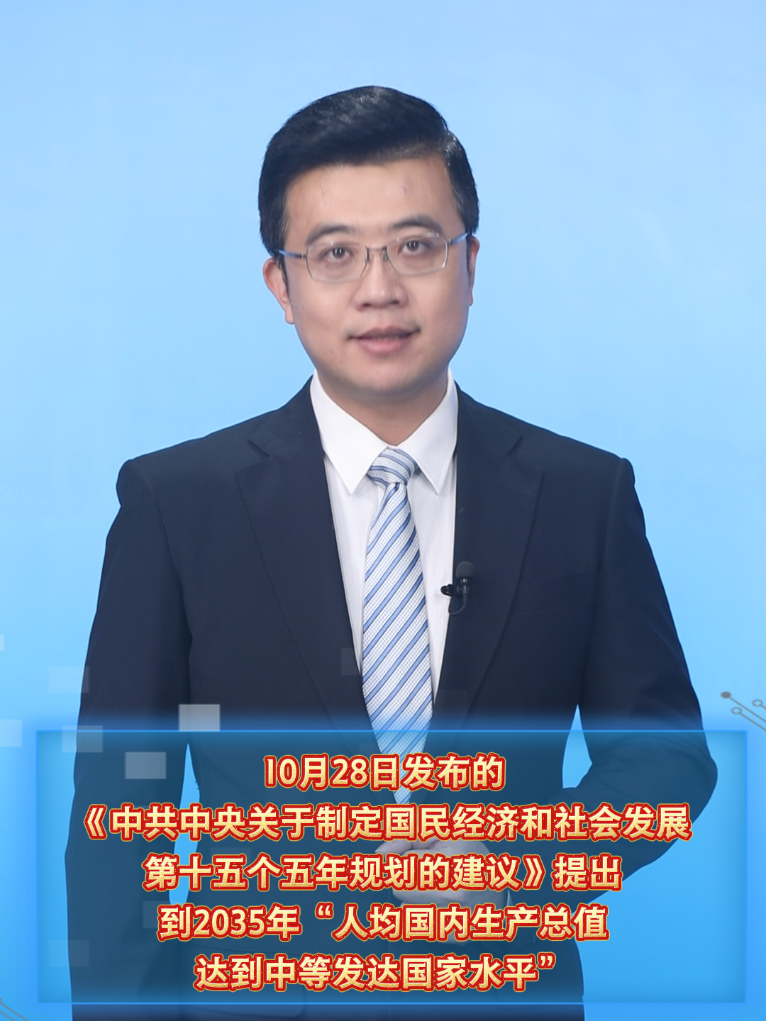 10月28日发布的《中共中央关于制定国民经济和社会发展第十五个五年规划的建议》提出:到2035年“人均国内生产总值达到中等发达国家水平”。