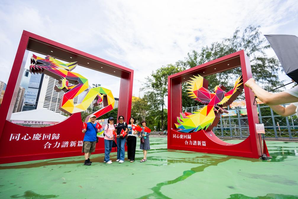 6月29日,市民在“维园庆回归”活动上打卡拍照。 新华社记者 朱炜 摄