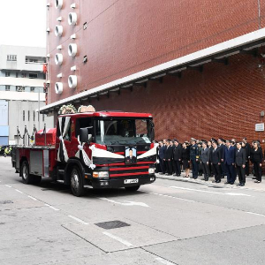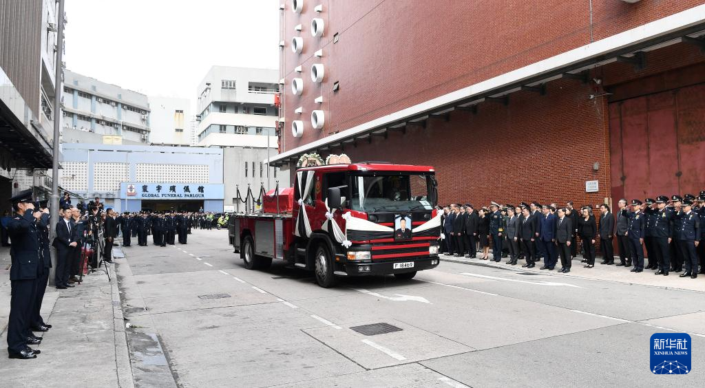 新华社香港12月19日电 香港特区政府消防处19日为大埔火灾中殉职的消防员何伟豪举行最高荣誉丧礼,特区行政长官李家超和多名特区政府官员到场致哀。