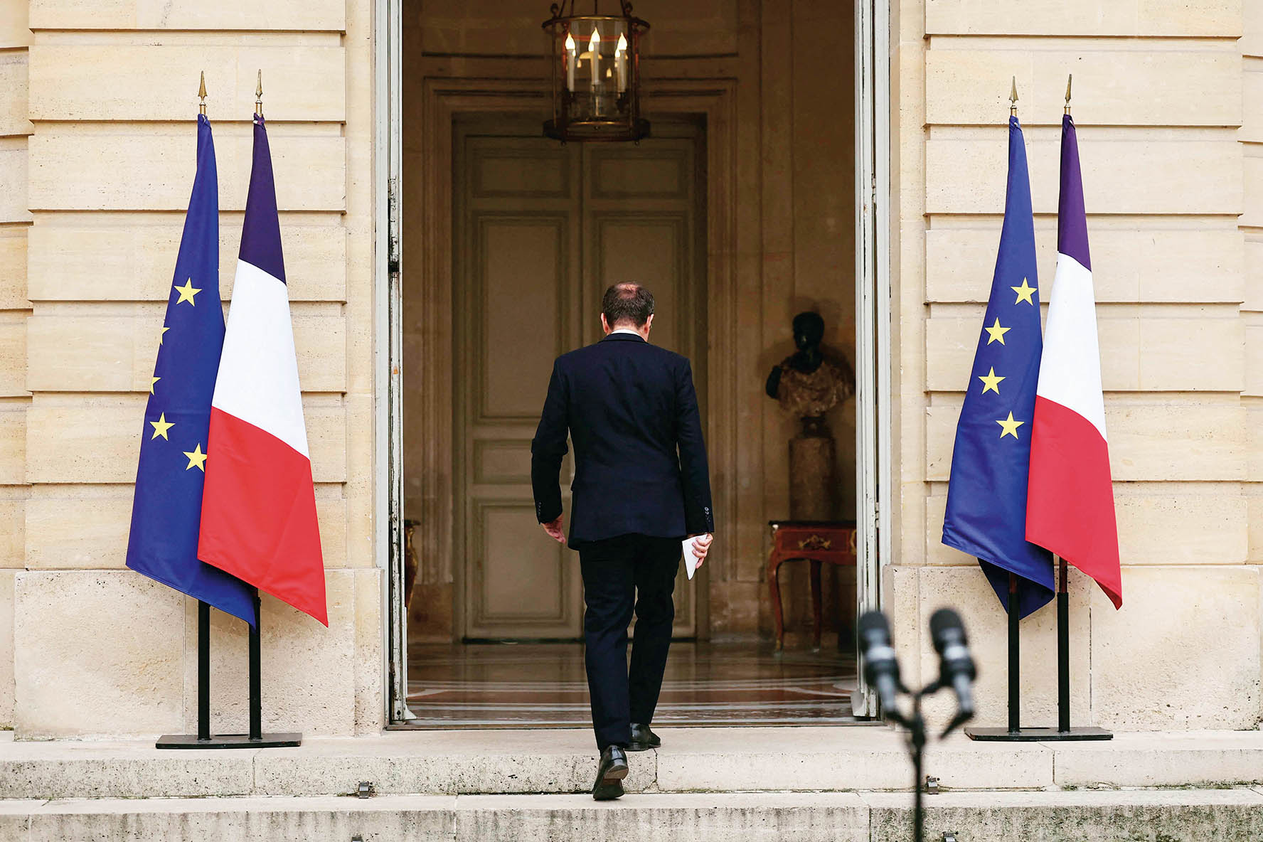 10月6日,勒科尔尼在法国巴黎总理府马提翁宫发表讲话后离开