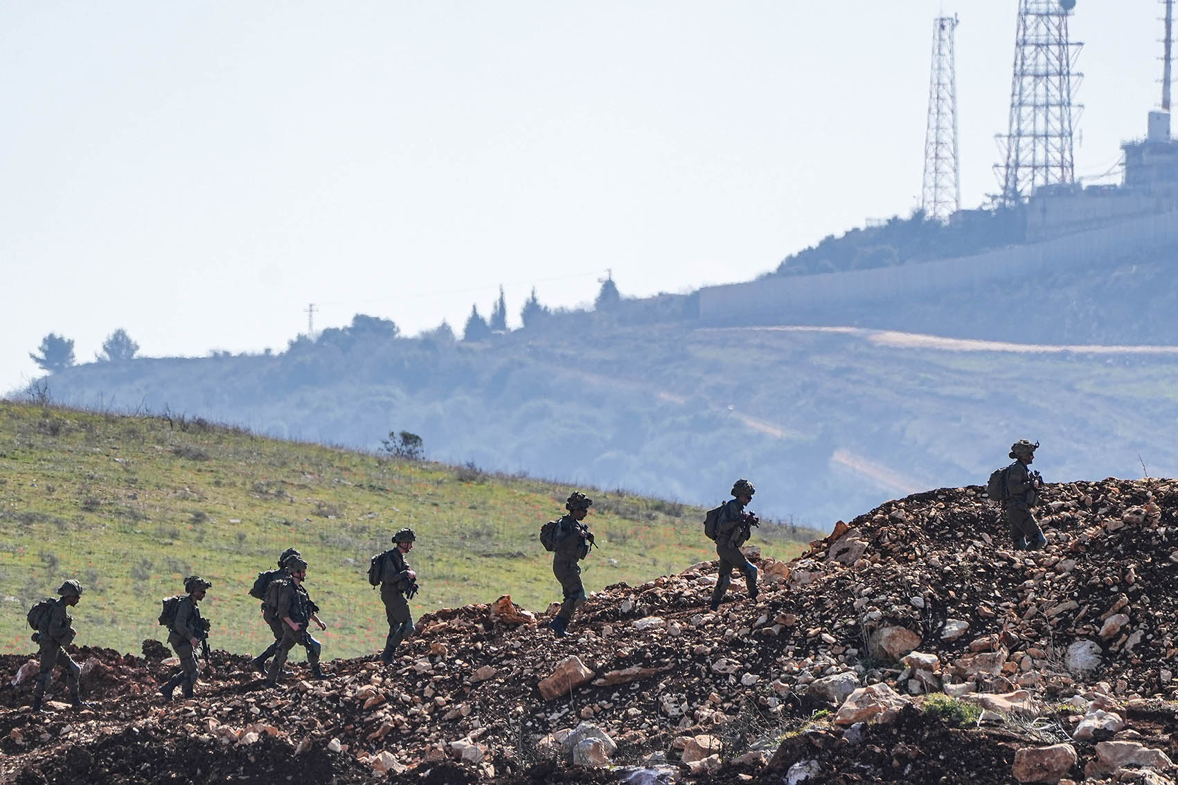 2月18日,以色列士兵在黎以边境黎巴嫩一侧巡逻