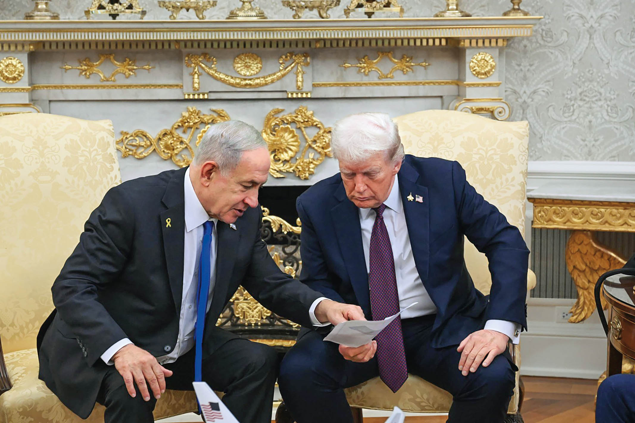 9月29日,在美国首都华盛顿白宫,美国总统特朗普(右)与到访的以色列总理内塔尼亚胡举行会谈