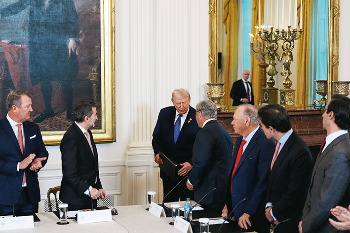 2026年1月9日,美国总统特朗普(中)出席在华盛顿白宫举行的与大型石油企业高管的会议