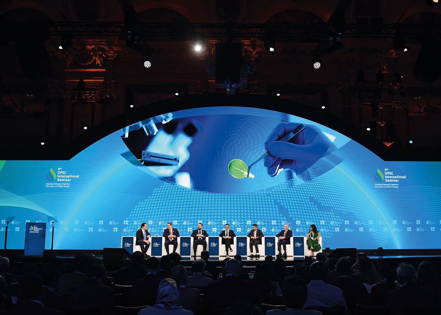 这是2025年7月10日在奥地利维也纳拍摄的第九届石油输出国组织(欧佩克)国际研讨会现场
