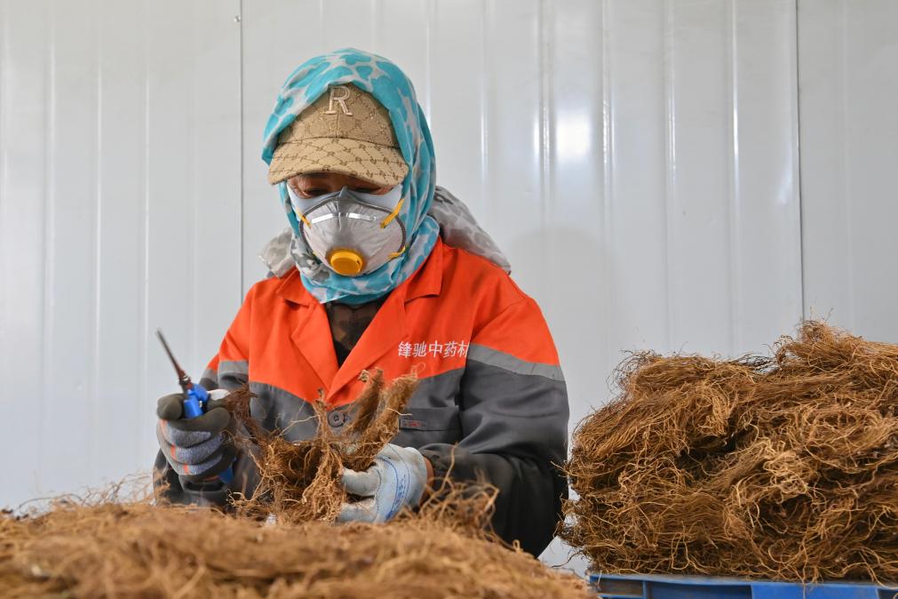 5月14日,在辽宁省抚顺市新宾满族自治县,一名工人在车间内加工辽细辛。