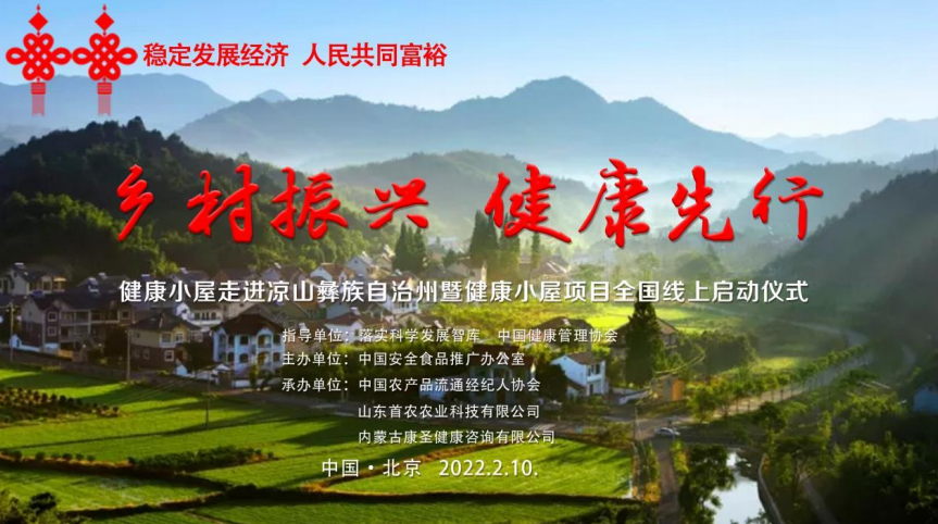 2月10日,由落实科学发展智库、中国健康管理协会指导,中国安全食品推广办公室主办,中国农产品流通经纪人协会、山东首农农业发展科技有限公司、内蒙古康圣健康咨询有限公司承办的“健康小屋走进凉山彝族自治州暨健康小屋项目全国线上启动仪式”在京举行。