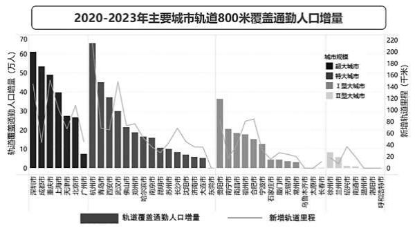 2023年度新增800公里轨道线路,覆盖通勤比重仅提升1个百分点,单位新增轨道里程的通勤提升效益较2022年减少一半。轨道覆盖通勤比重最高的4个城市分别是:深圳35%、成都34%、武汉33%、广州31%,年度新增轨道均未能有效提高通勤覆盖。(记者 任震宇)