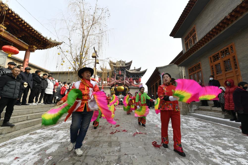 2月24日,村民在河口古镇景区闹社火。新华社记者 郎兵兵 摄